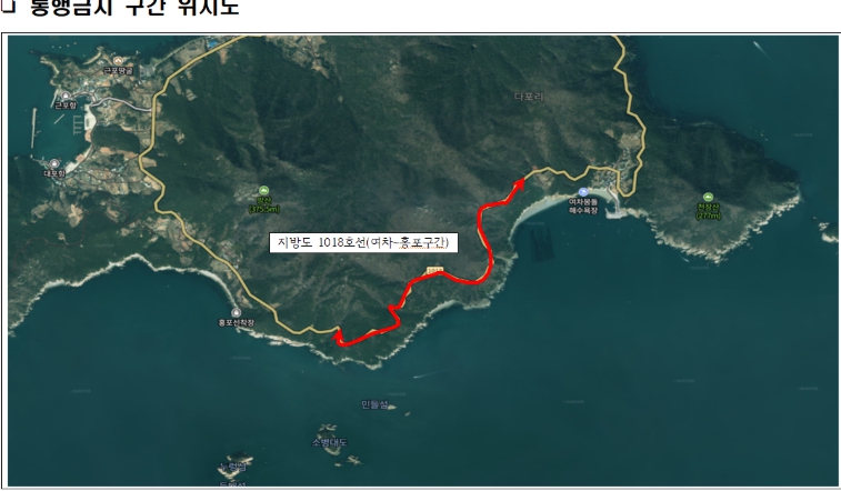 ▲ 거제시 지방도 1018호선(여차~홍포구간) 전면 통행금지 |