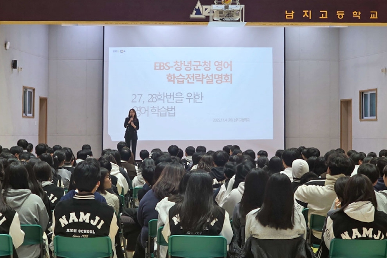[뉴스스텝] 창녕군은 지난 4일 남지고등학교에서 1~2학년 학생 240명을 대상으로 ‘EBS 대표강사 초청 학교로 찾아가는 학습전략 설명회’를 개최했다. 이로써 군은 올해 계획된 EBS 대표강사 초청 학습전략 설명회를 모두 성공적으로 마무리했다.