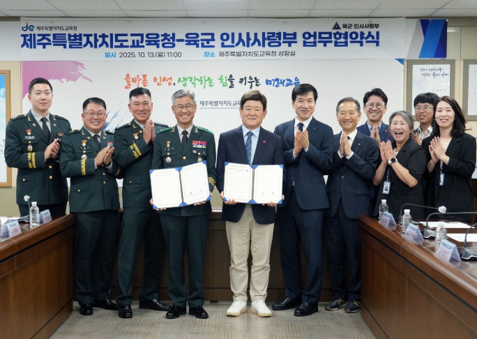 [뉴스스텝] 제주특별자치도교육청은 13일 도교육청 상황실에서 육군 인사사령부와 고등학생들의 진로 탐색 기회 확대를 위한 업무협약을 체결했다.