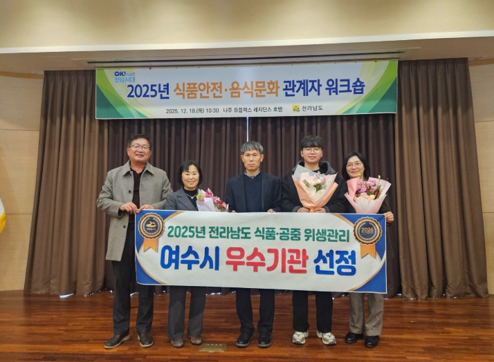 | ▲ 여수시가 전라남도 주관 ‘2025년 식품·공중 위생업무 평가’에서 우수기관으로 선정됐다. |