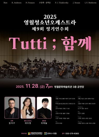 [뉴스스텝] (재)영월문화관광재단은 오는 11월 28일 오후 7시, 영월문화예술회관 3층에서 ‘2025 영월청소년오케스트라 제9회 정기연주회 'Tutti : 함께'’를 개최한다고 밝혔다.