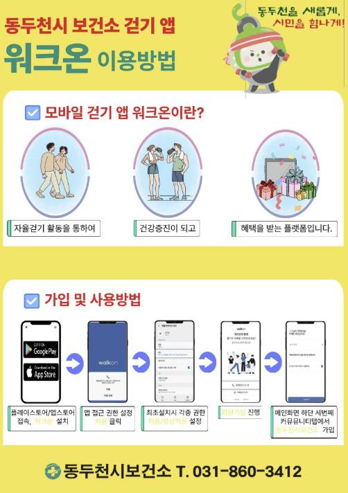 [뉴스스텝] 동두천시는 오는 9월부터 11월까지 3개월간 모바일 걷기 앱‘워크온(WalkOn)’을 활용한 ‘FUN FUN한 동네걷기’ 프로그램을 운영한다고 밝혔다.