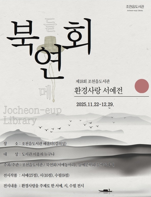 [뉴스스텝] 제주시 조천읍도서관은 11월 22일부터 12월 27일까지 도서관 1층 배움터에서 ‘제18회 환경사랑 서예전’을 개최한다.