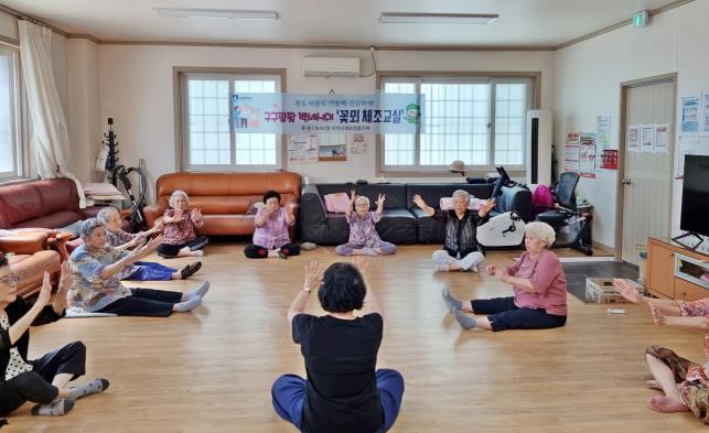 이날 체조교실에는 경로당 이용 어르신뿐만 아니라 저소득 홀몸 어르신 등 관내 어르신 30여명이 참여했으며, 전문 강사의 지도 아래 음악에 맞춰 신체 유연성과 균형감각을 키울 수 있는 생활체조와 스트레칭 운동을 함께 진행했다.