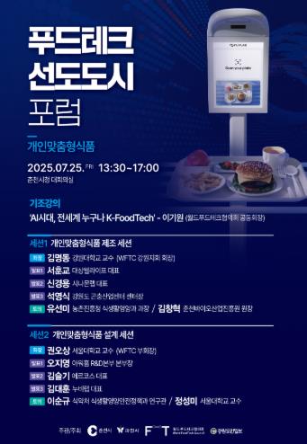 춘천시가 푸드테크 선도도시로의 위상을 강화하고 글로벌 협력 기반을 다지기 위해 오는 25일 오후 1시 30분 시청 대회의실에서 ‘푸드테크 선도도시 포럼’을 연다.
