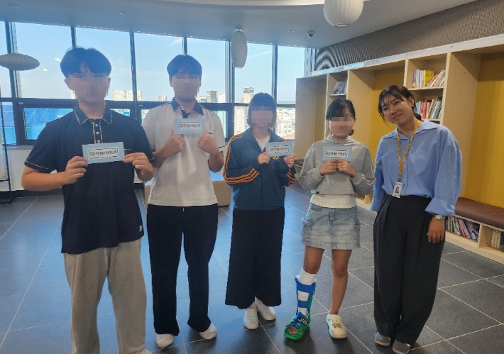 ▲ 청소년상담복지센터를 통해 무안경찰서 후원금을 전달받은 청소년들 |