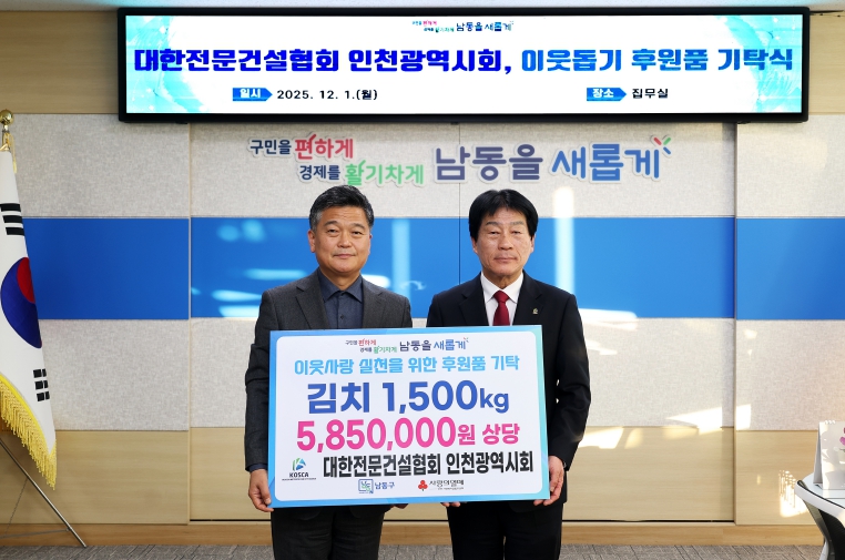 박종효 남동구청장은 “지역 이웃을 위해 따뜻한 나눔을 실천해 주신 협회 측에 깊이 감사드린다”라고 말했다.