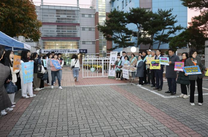 | ▲ 지난 2025학년도 수학능력시험 당일 시험장 입구에서 수험생들을 응원하며 격려하는 모습 |