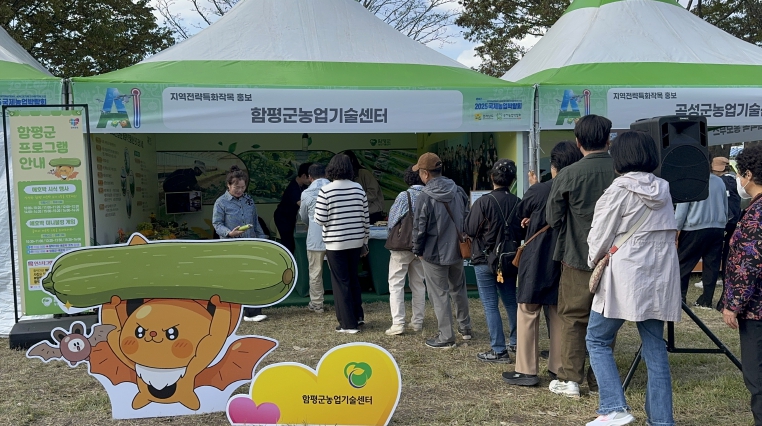 야외 홍보 부스에서는 함평 대표 작물인 애호박을 활용한 요리 시식 행사가 진행돼 관람객들이 맛을 보고 즐기는 체험형 홍보가 이뤄져 큰 호응을 얻었다.