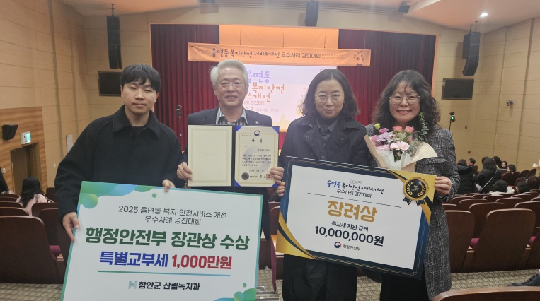 [뉴스스텝] 함안군은 지난 3일 행정안전부가 주관한 ‘2025년 읍면동 복지·안전서비스 우수사례 경진대회’에서 장려상을 수상했다고 밝혔다.