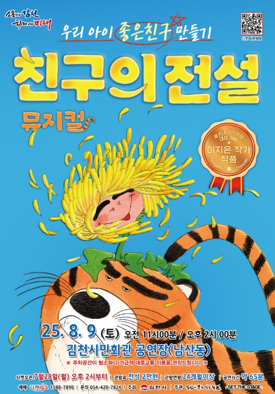 볼로랴 리가치상(어린이문학 분야의 노벨상)을 수상한 이지은 작가의 베스트셀러를 모티브로 만들어진 ‘가족뮤지컬-친구의 전설’은 유아 자녀를 둔 가족에게 유쾌한 재미와 뭉클한 감동의 시간을 선사할 예정이다.