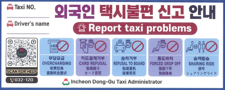 [뉴스스텝] 인천 동구는 외국인 관광객을 대상으로 한 불법 택시 영업을 근절하고 이용 편의를 높이기 위해‘불편 신고 QR스티커’를 택시에 부착한다고 밝혔다.