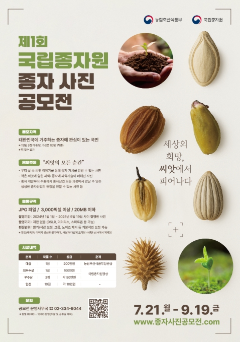 종자(씨앗)에 관심있는 대한민국 국민이라면 누구나 공모전 누리집에서 참여할 수 있다. 응모기간은 7월 21일부터 9월 19일까지로 2024년 1월 1일 이후 본인이 직접 촬영한 사진이어야 한다.