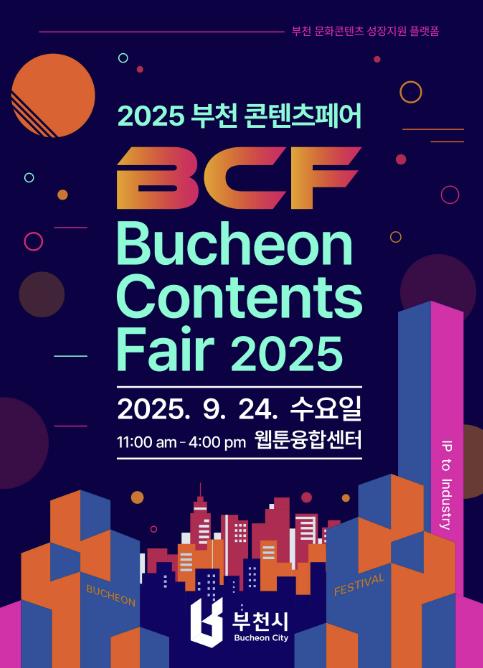 [뉴스스텝] 부천시는 9월 24일 오전 11시 웹툰융합센터에서 ‘2025 부천 콘텐츠페어’를 연다. 이번 행사는 ‘From IP to Industry’를 주제로 우수 콘텐츠 지식재산권(IP)의 비즈니스 확장, 투자유치, 판로개척을 지원하기 위해 마련됐다.