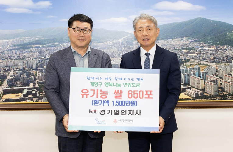 [뉴스스텝] 인천광역시 계양구는 지난 22일 KT부천지사에서 지역 내 어려운 이웃을 돕기 위해 유기농 쌀 650포(4kg)를 기탁했다고 밝혔다.