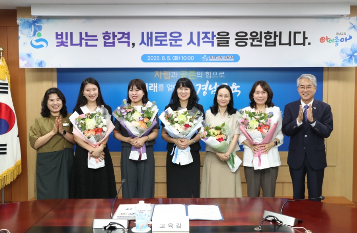 [뉴스스텝] 경상남도교육청은 5일 본청 중회의실에서 2025년 유치원 교육전문직원 공개 전형 합격자 5명에게 합격통지서를 수여했다.
