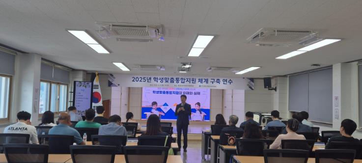 이번 연수는 2026년부터 전국 모든 학교에 전면 시행 예정인 ‘학생맞춤통합지원 사업’에 대비하기 위하여 ‘학생맞춤통합지원 체계 구축 사업의 기본 방향 및 단위학교 운영 사례’라는 주제로 진행됐다.
