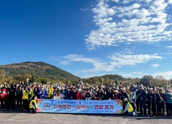 [뉴스스텝] 서귀포시 동부보건소는 11월 음주폐해 예방의 달을 맞아 16일 표선면 대록산 일대에서 ‘지역주민과 함께하는 건강걷기’ 행사를 개최했다.