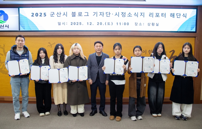 [뉴스스텝] 군산시가 올 한 해 현장 곳곳을 발로 뛰며 생생한 소식을 전한 ‘2025 블로그기자단과 시정소식지 리포터 해단식’을 20일 시청에서 개최했다.