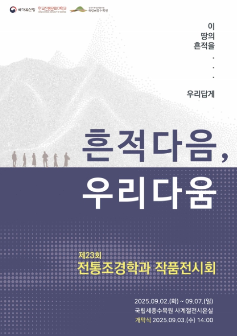 [뉴스스텝] 국가유산청 한국전통문화대학교는 오는 9월 2일부터 7일까지 국립세종수목원 사계절전시온실에서 ‘흔적다음, 우리다움’을 주제로 '제23회 전통조경학과 작품전시회'를 개최한다.