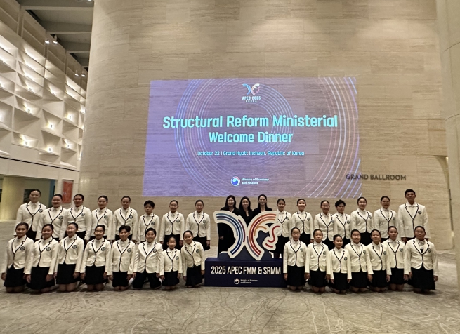 [뉴스스텝] 인천 계양구립소년소녀합창단이 10월 22일 영종도 그랜드하얏트인천에서 열린 ‘APEC 구조개혁장관회의’ 환영 만찬 무대에 올라 아름다운 하모니를 선보였다.
