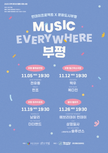 부평구 문화도시센터, ‘MUSIC EVERYWHERE 부평’ 개최…11월 매주 수요일 지역 뮤지션들의 공연 펼쳐져