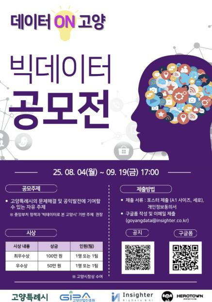 공모는 자유 주제로, 고양시 공공 및 민간 빅데이터를 활용해 지역 현안을 해결하고 공익 발전에 기여할 수 있는 아이디어를 가진 시민 누구나 참여 가능하다.