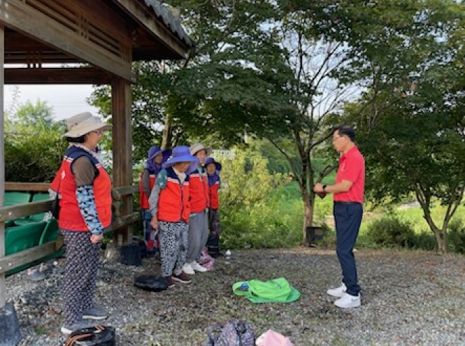 ▲ 강희천 금성면장 노인일자리 현장 안전 수칙 안내 |