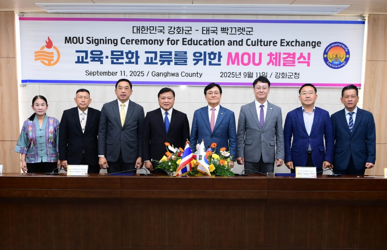 [뉴스스텝] 강화군은 지난 11일 태국 논타부리주 빡끄렛군(시장 위차이 반다삭)과 교육·문화 교류 협력을 위한 양해각서(MOU)를 체결했다.