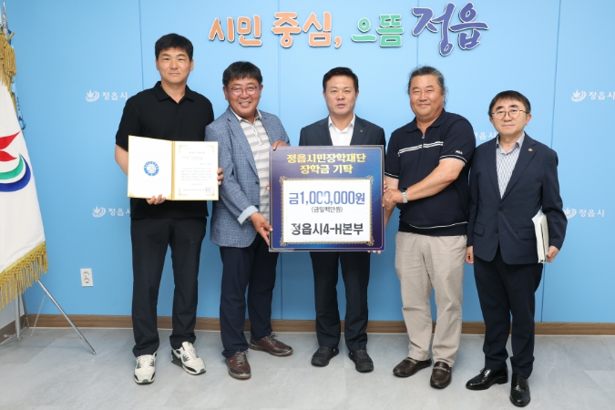 [뉴스스텝] 정읍시4-H본부는 4일 한마음대회에 보내준 지역사회의 성원에 보답하고자 장학금 100만원을 정읍시민장학재단에 기탁하며, 미래세대 인재 육성에 따뜻한 뜻을 전했다.