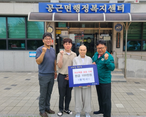 [뉴스스텝] 횡성군 공근면 봉덕사(주지 일광스님)는 19일 추석 명절을 앞두고 관내 저소득층을 돕기 위해 성금 100만 원을 공근면행정복지센터에 기탁했다.