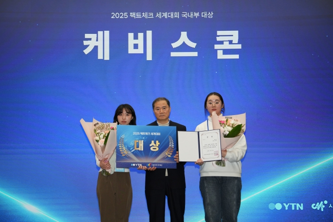 | ▲ 시청자미디어재단·YTN 주최 ‘2025 팩트체크 세계대회’에서 국내 부문 대상을 수상한 박여진 학생과 한밭대 김규리 학생 |