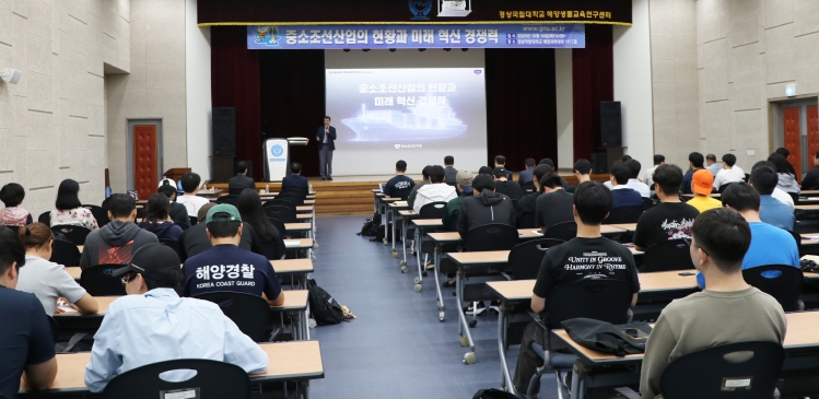 [뉴스스텝] 경상국립대학교 해양과학대학은 10월 14일 해양과학대학 해양생물교육센터 1917홀에서 중소조선연구원 서용석 원장을 초청하여 ‘중소조선산업의 현황과 미래 혁신 경쟁력’이라는 주제로 ‘제3회 GNU 마린 드림 토크’를 개최했다.