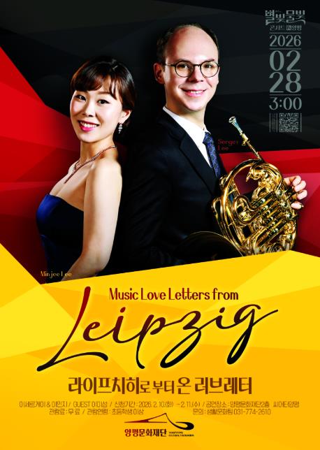 [뉴스스텝] 양평문화재단은 오는 28일 오후 3시, 양평문화재단 2층 시어터양평에서 ‘별빛물빛 콘서트 in 양평’ 2월 정기공연으로 클래식 공연 《라이프치히로부터 온 러브레터(Music Love Letters from Leipzig)》를 선보인다.