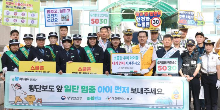이번 캠페인에는 박희조 동구청장을 비롯해 동부경찰서, 각 초등학교 관계자, 녹색어머니회 회원 등 40여 명이 참여했으며, ▲횡단보도 통행, 정지선 준수, 제한속도 준수 홍보 ▲‘안전속도 5030’ 홍보 ▲스쿨존 내 불법 주정차 단속 및 계도 ▲위험요소 점검 및 개선 활동 등을 함께 진행했다.