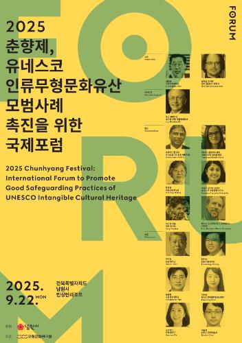 남원시가 주최하고 (사)무형문화연구원이 주관하여 진행되는 남원 춘향제 국제포럼은 국내외 무형유산 전문가, 지역 축제 관계자, 연구자들이 참여할 예정이다.