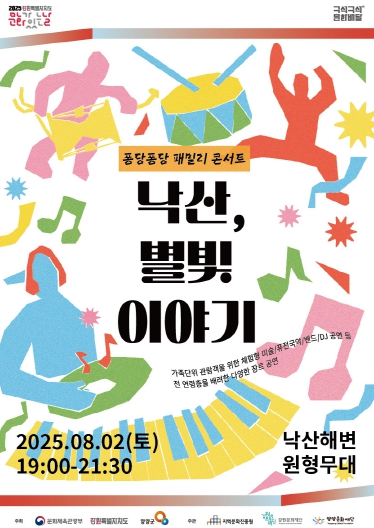 [뉴스스텝] (재)양양문화재단에서는 ‘2025 문화가 있는 날 – 구석구석 문화배달’ 사업의 일환으로 오는 8. 2. 19:00~21:30, '낙산, 별빛 이야기 콘서트'를 양양군 강현면 낙산해변 원형무대(강현면 해맞이길 42-2)에서 진행한다.