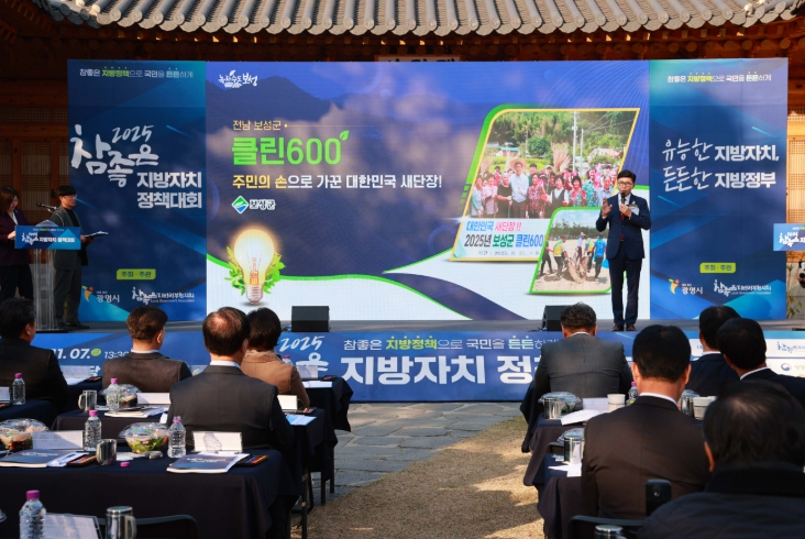 보성군은 지난 7일 국회 사랑재에서 열린 ‘2025 참좋은 지방자치 정책대회’에서 보성군의 대표 민관 협력형 청결 책임제 사업인 ‘클린600’이 ‘대상(大賞)’을 수상했다고 밝혔다.