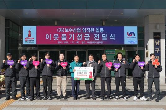 [뉴스스텝] (자)보수산업은 지난 1월 22일, 부산 남구청을 방문해 직원들이 십시일반 정성을 모아 마련한 성금 500만 원을 기부했다고 밝혔다.