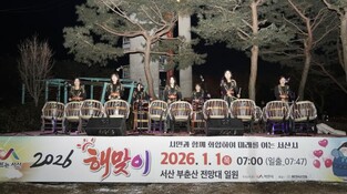 [뉴스스텝] 충남 서산시는 ‘2026 해뜨는 서산 해맞이 행사’가 성공적으로 마무리됐다고 밝혔다.지난 1일 오전 7시 부춘산 전망대에서 열린 행사에는 1천여 명의 시민이 참여해 떠오르는 붉은 해를 바라보며 새해 소망을 빌고 덕담을 나눴다.새해를 여는 타악 퍼포먼스를 시작으로 아코디언 하모니 공연, 새해 희망 메시지 영상 상영, 일출 감상 순으로 진행됐다.오전 7시 4분경 어둠 사이로 모습을 보인 붉은 해는