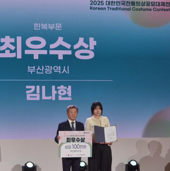 [뉴스스텝] 경상국립대학교 자연과학대학 의류학과 4학년 김나현 학생이 부산광역시가 주최하고 (사)부산섬유패션산업연합회가 주관한 ‘제26회 대한민국 전통의상 공모대제전’에서 한복 부문 창작 분야 최우수상(부산광역시장상, 상금 100만 원)을 수상했다.