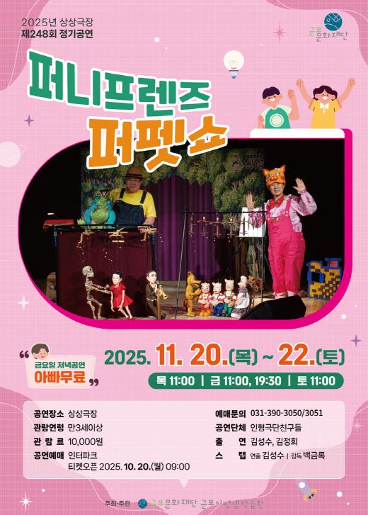 군포문화재단 전형주대표이사는 “다양한 개성의 인형이 선보이는 공연을 통해 시민들이 행복한 웃음을 나누길 바라며, 상상극장이 앞으로도 가족이 함께 문화를 즐기는 공간으로 자리하길 기대한다”고 말했다. 상상극장은 오는 12월까지 매달 정기공연이 진행되며, 누구나 함께 즐길 수 있는 무대를 꾸준히 이어갈 예정이다.