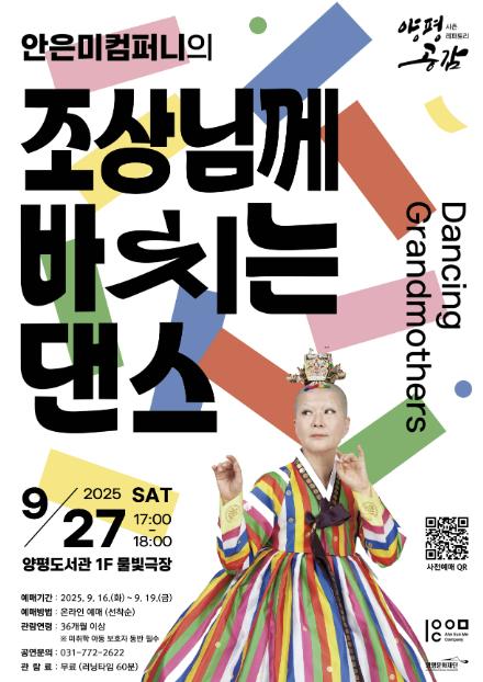 [뉴스스텝] 양평문화재단은 오는 27일 오후 5시, 양평도서관 물빛극장에서 2025년 시즌 레퍼토리 ‘양평 공감’의 일곱 번째 작품으로 안은미컴퍼니의 ‘조상님께 바치는 댄스’를 선보인다.