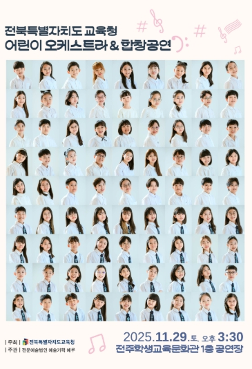 [뉴스스텝] 전북특별자치도교육청은 오는 29일 전주학생교육문화회관 1층 공연장에서 ‘2025 전북특별자치도교육청 어린이 오케스트라 & 합창공연’을 개최한다.