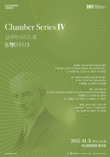 [뉴스스텝] 부산시립교향악단(수석객원지휘자 홍석원)의 색다른 면모를 감상할 수 있는 실내악 시리즈의 네 번째 무대가 열린다. 이번 공연은 부산시향의 상임 단원과 비상임 단원이 함께 무대에 올라 앙상블을 만들어 내는 특별한 무대로, 오는 11월 5일(화) 부산문화회관 중극장에서 펼쳐진다.