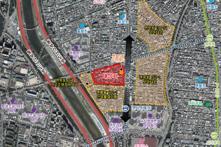 면목동 일대는 중랑천이라는 우수한 자연환경을 가지고 있으며, 향후 면목선 면서역(가칭) 개통, 동부간선도로 지하화 및 상부공원화로 교통여건이 개선되고 쾌적한 일상의 여가를 즐길 수 있는 주거환경을 갖고 있어 개발 잠재력이 풍부한 지역이다.