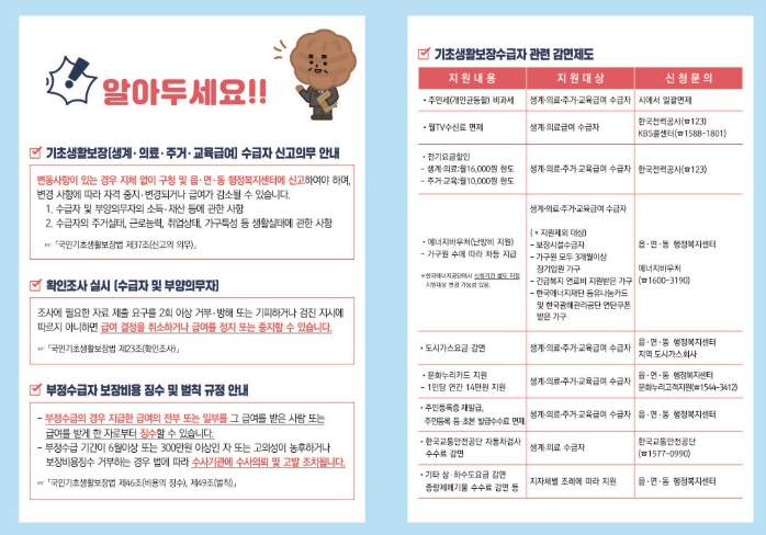복지 소식지는 알기 쉬운 언어와 디자인으로 제작돼 대상자들에게 기초생활보장제도의 내용을 정확하고, 친근하게 전달할 수 있을 것으로 기대되고 있다.