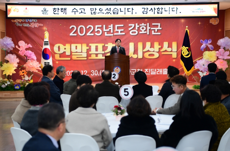 이번 연말 표창 수여식은 박용철 강화군수를 비롯해 지역 주민 등 150여 명이 참석한 가운데 진행됐다. 군정 성과를 함께 돌아보고 수상자들의 노고를 치하하는 자리로, 한 해를 마무리하는 시상식으로 꾸며져 연말 분위기를 더했다.