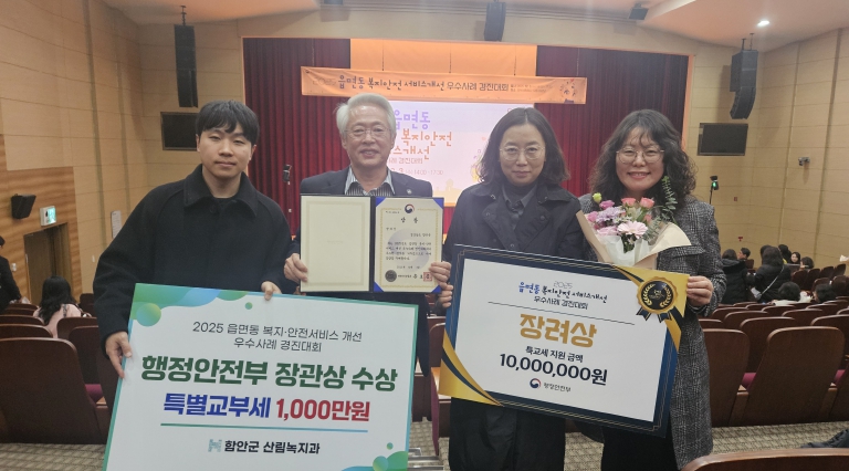 주요 성과로는 ▲행안부, 2025년 읍면동 스마트복지안전서비스 경진대회 ‘장려’ ▲경상남도, 2025년 산사태 예방·대응 시군평가 결과 ‘우수’ ▲경상남도, 2025년 산불 예방·대응 시군평가 결과 ‘우수’▲경상남도, 2025년 산불지상진화 경연대회 ‘장려’▲경상남도, 산림자원분야 시군평가 결과 ‘장려’등이다.