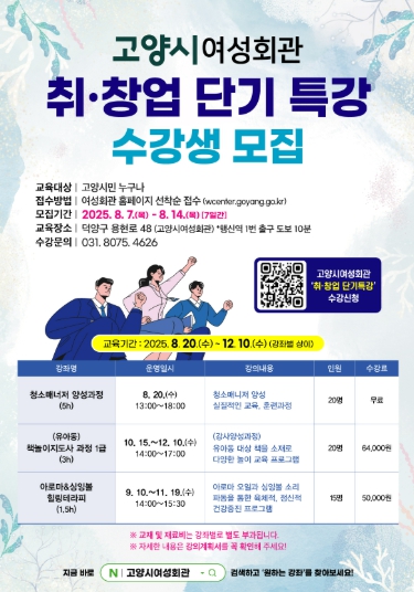 ▲ 고양시 여성회관 취·창업 단기 특강 수강생 모집 안내문 |